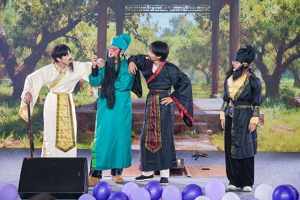 晚会以极具潮汕地域文化特色的民俗表演《英歌舞》开场,表演者们以刚劲的动作、铿锵的鼓点和磅礴的气势,瞬间点燃全场气氛。随后,歌手们深情演唱,舞者们活力四射,共同营造出热烈欢快的晚会氛围。T台秀节目中,模特们用时尚步伐和绰约身姿演绎潮流魅力,在璀璨灯光下呈现出一场惊艳的视觉盛宴。武术表演者拳脚生风,身形如竹,在刚劲有力的动作中彰显中华武术的独特魅力。话剧表演则通过演员们精湛的演技,呈现了一个有笑有泪的精彩故事,引领观众开启一段心灵探索之旅。现场掌声和欢呼声此起彼伏,将晚会气氛不断推向高潮。晚会最后,格致书院导生会全体成员齐声高歌《稻香》,共同展现青年一代心往一处聚、劲往一处使的凝聚力,传递跨越时光的温暖力量,接续书院薪火相传的精神传承,也为整场活动画上圆满句号。