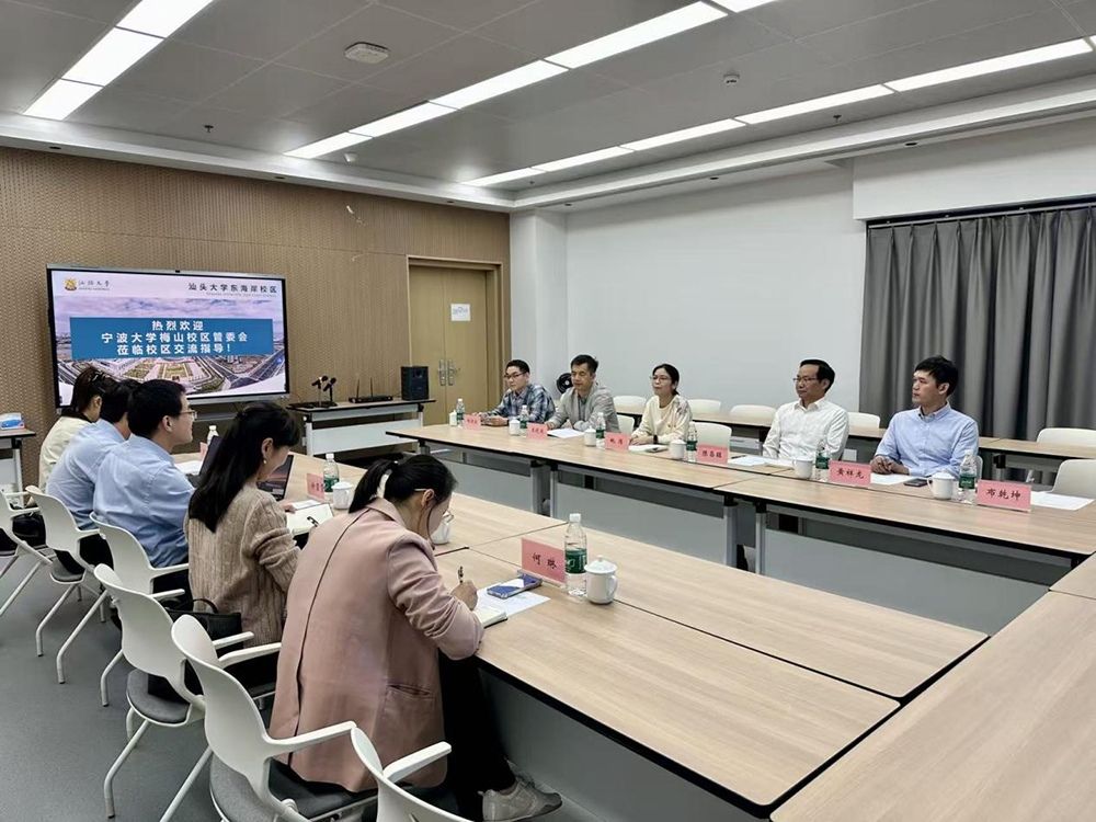 11月25日下午,宁波大学梅山校区管委会主任徐崇贤、副主任吕建慧一行访问汕头大学东海岸校区,开展调研交流活动。东海岸校区管委会主任姚熠、副主任陈昌旺,党委宣传统战部副部长王晓鸿等热情接待了来访嘉宾。