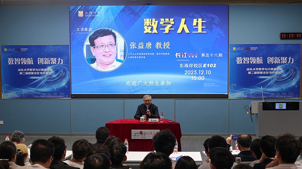 12月10日下午,汕头大学第五十八期“长江大讲坛”于东海岸校区E座教学楼102教室举行。国际著名数学家,中山大学香港高等研究院、数学学院张益唐教授受邀作“数学人生”专题讲座。汕头大学党委副书记、校长郝志峰教授及180名师生参加讲座,数学与计算机学院党委临时负责人姚熠主持讲座。