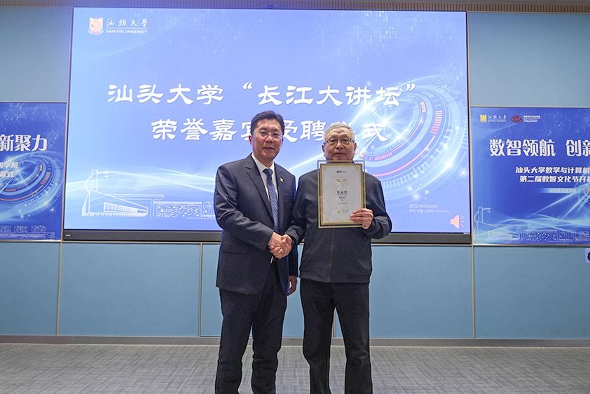 随后,郝志峰为张益唐颁发了汕头大学“长江大讲坛”荣誉嘉宾证书。