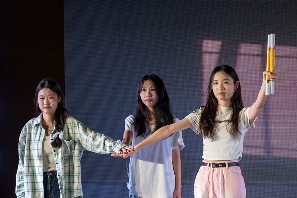 随后,创意短剧比赛正式开始。同学们匠心独运,发挥无限创意。有的作品刻画正面英雄人物形象,树立正确的价值观,如《到格尔木的火车票》弘扬铁道兵忠诚担当、艰苦奋斗的精神,《明断潮声》《太平盛世》则着重强调公平正义、明辨是非;有的作品围绕中华优秀技艺,探索新时代背景下文化传承使命与职业发展的融合之路,如《花篮里的温度》展现潮汕传统花篮在坚守与创新下的新面貌,《投掷山海》围绕潮绣展现不同的人生路径,《逃出“牢笼”》中热爱英歌舞的女孩勇敢追梦;有的作品聚焦个人成长,追寻内心的力量,如I Love English通过大一女生小美的经历鼓励同学们拒绝盲从,《笨鸟传奇》讲述了一个男子在经历生活迷茫与挫折后接纳自我实现蜕变,《双生》讲述农村女孩阿苦面对不幸勇敢反抗突破自我,《飞吧!燕子向火星》展现人们对未知世界的向往与不懈探索的热情。