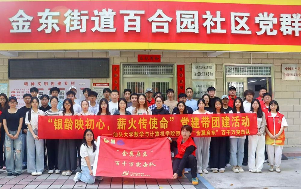 深入贯彻习近平总书记关于关心下一代工作的重要指示批示精神,弘扬“五老”精神,推动关心下一代工作的创新发展,10月29日,汕头大学数学与计算机学院团委“金翼启东”百千万突击队联合汕头市金平区金东街道百合园社区党总支部、居委会,走进百合园社区开展“银龄映初心,薪火传使命”党建带团建活动。学院辅导员朱小雪老师及各学生党支部、团支部优秀学生代表共30人参与本次活动。
