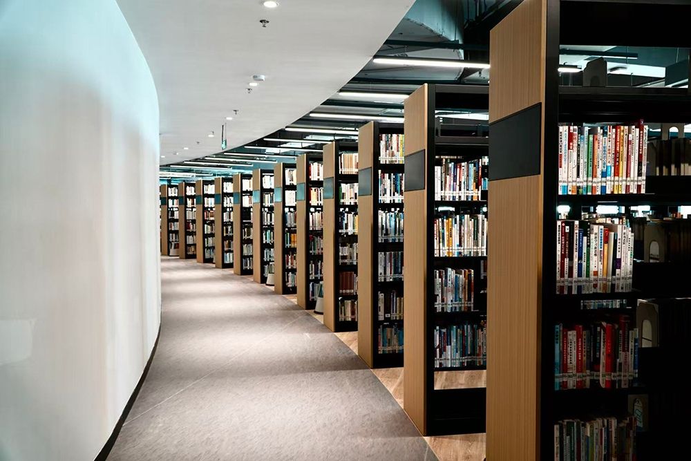 东海岸校区图书馆设计采用开放智慧环、恒动知识轮的创意理念——整体造型如同智慧之环降落在草坡之上,韵律化的立面百叶好像被海风吹拂的书页,徐徐翻动;又犹如错动咬合的知识齿轮,成为恒动不止的校园智力引擎。圆形体量之下为方形的二层草坡平台,提供了休闲聚会的场所,草坡下为共享学习中心,是自主学习时代的新型场所。其布局理念,亦符合中国古代传统哲学思维——“天圆则产生运动变化,地方则收敛静止”。