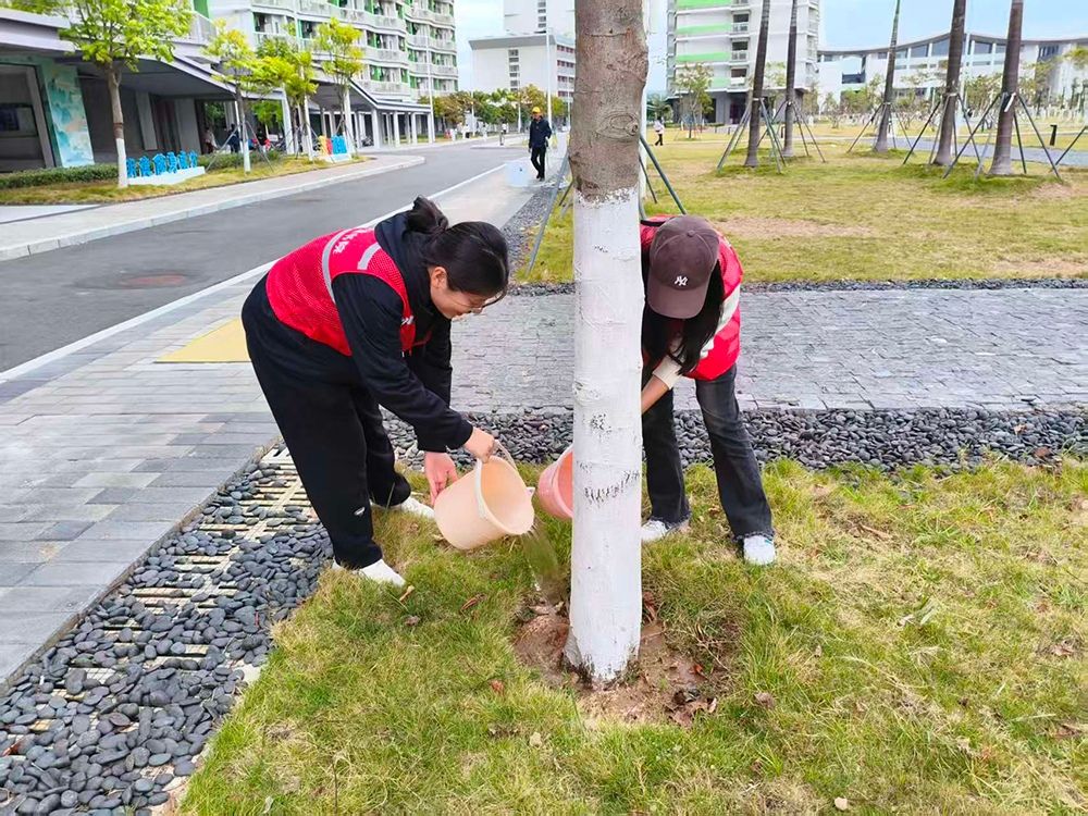 活动开展以来,各学院学生积极响应,依照提前划分的养护责任区,有序进行浇水、除草、施肥等基础养护工作。在物业园林工作人员的专业指导下,同学们操作规范、注重细节,自觉爱护绿化设施,严格遵守“不踩踏、不攀折”的文明准则,展现出良好的生态素养与协作精神。参与同学表示,亲手照料绿植,让他们深刻体会到“一草一木皆生命”的含义,对校园草木有了更深的情感,也增强了共建共享绿色和谐校园的责任感。