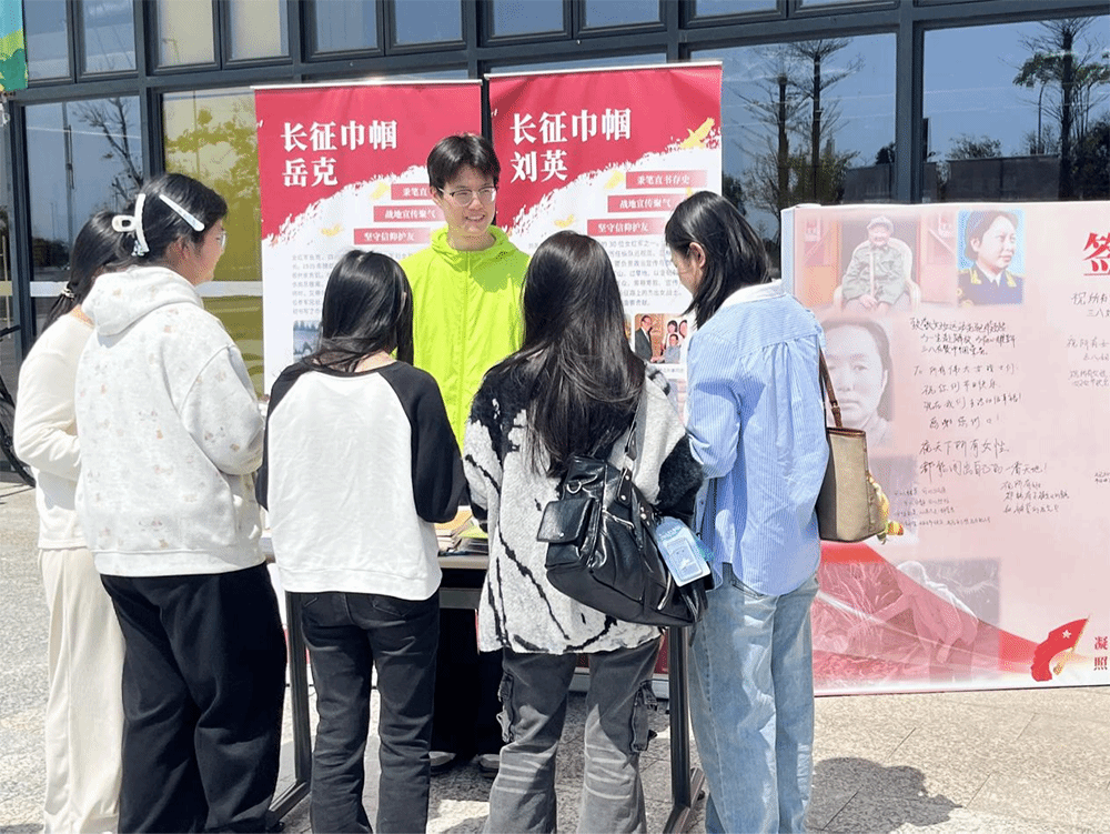 活动现场设置了长征女红军事迹展板,集中展示蔡畅、李贞、邓颖超、贺子珍等七位女红军的英雄故事,再现她们在长征中忍饥挨饿、勇克艰险,以柔韧与坚毅扛起家国大义的动人瞬间。展板上“五年四省,两万公里”的字样,既是汕头大学连续五年开展“重走长征路”项目的成果,也饱含了学子们对长征女红军的缅怀与敬意。