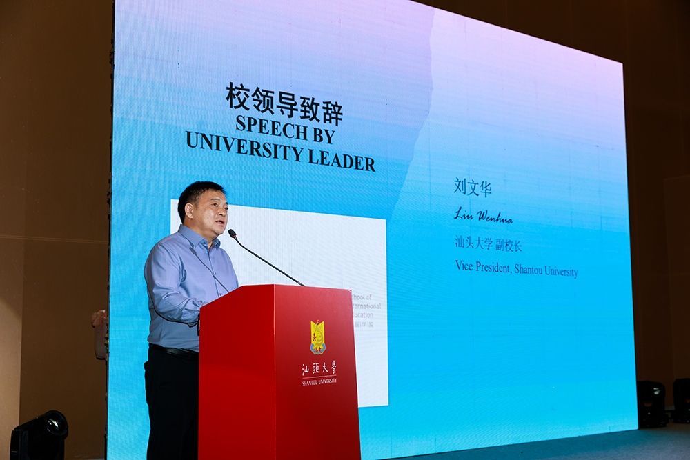 刘文华在大会上发表致辞。他首先代表学校对2025级国际学生新生表示热烈欢迎,并通过分享个人来汕工作经历,向学生介绍了汕头整体环境、文化风俗、地区特色以及汕头大学基本情况、发展愿景等。他表示,大学学习是人生最宝贵的经历,希望全体国际学生能尽快完成身份转变,融入汕头大学校园生活,珍惜在汕头大学学习的机会,以勤勉为舵,顺利完成学业。
