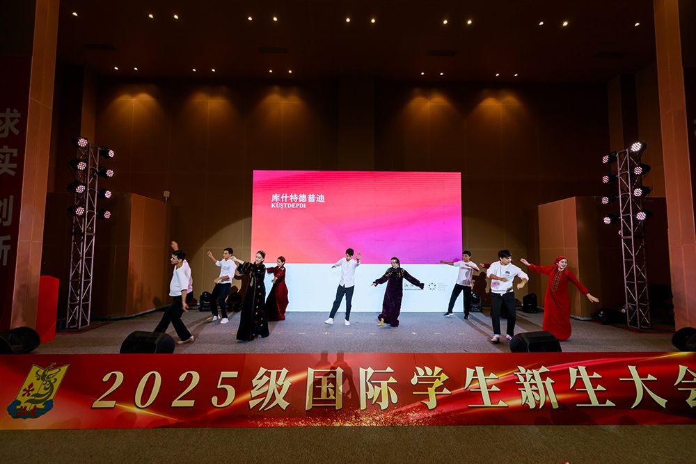 大会在精彩的暖场表演中拉开序幕。土库曼斯坦学生Orazmyradova Melike(梅林)和Berkeliyeva Ogulbossan的舞蹈表演“Manifesting Snap”通过动作来表达愿望、目标和能量,每一个步伐、每一个手势,都是将内心渴望传递至现实世界的方式。来自泰国的Chavisa Wikunchaiyanan(秦丽梅)、Chananya Haiwang(王月欣)等同学带来的“伊森传统舞蹈”,动作轻快、优美,节奏欢快,充分展现泰国东北部伊森地区丰富多彩的民俗文化和地方特色。Gochmyradova Ogulnabat(宋雪)、Amanov Meret(安南)等土库曼斯坦学生表演的“库什特德普迪(Küştdepdi)”是土库曼斯坦文化中一种独特的表演艺术形式,融合了即兴诗歌、舞蹈和歌曲,2017年被列入联合国非物质文化遗产名录,演出欢快喜庆,点燃了全场气氛。