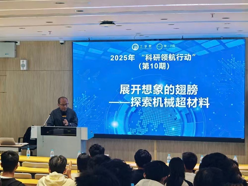 为促进教师、研究生与本科生深度互动,激发学生科研热情,提升科研和创新能力,工学院、敬一书院于10月22日下午开展“科研领航行动”(第10期)。主讲人杨楠教授围绕主题“展开想象的翅膀——探索机械超材料”开展讲座。