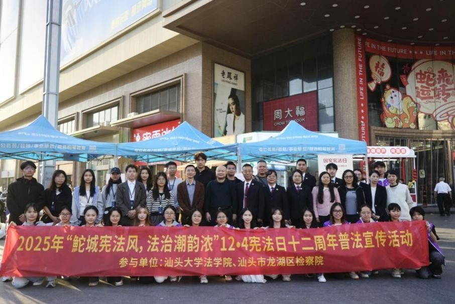 11月29日下午,“鮀城宪法风 法治潮韵浓”国家宪法日普法宣传活动在汕头市龙湖区黄河路泰安合胜外广场举办。此次活动由汕头大学法律援助研究中心、汕头大学法律援助工作站师生共同策划举办,同时邀请汕头市龙湖区人民检察院共同参与,旨在通过简单有趣的形式向社区居民普及宪法知识,增强全民法治意识,吸引了众多群众参与。