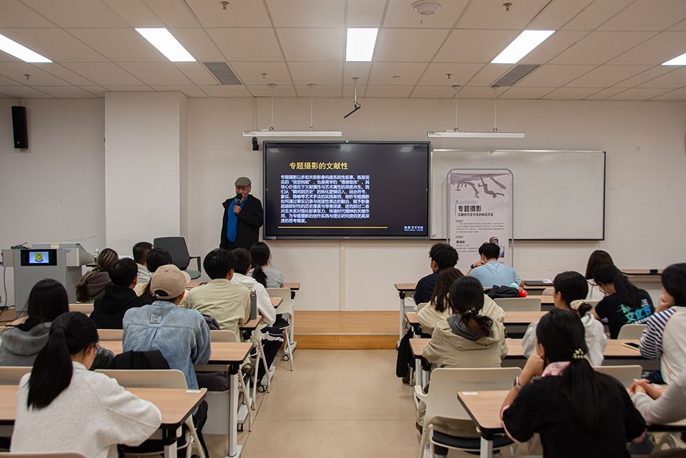 整场讲座中,蔡焕松结合丰富的名家摄影作品与自身研究成果,系统梳理了专题摄影的核心逻辑与创作思路,既有对专题摄影本质的深度剖析,也有对具体创作手法的实操指引。这不仅让师生们对专题摄影形成系统认知,更为相关创作与研究提供了思路启发。