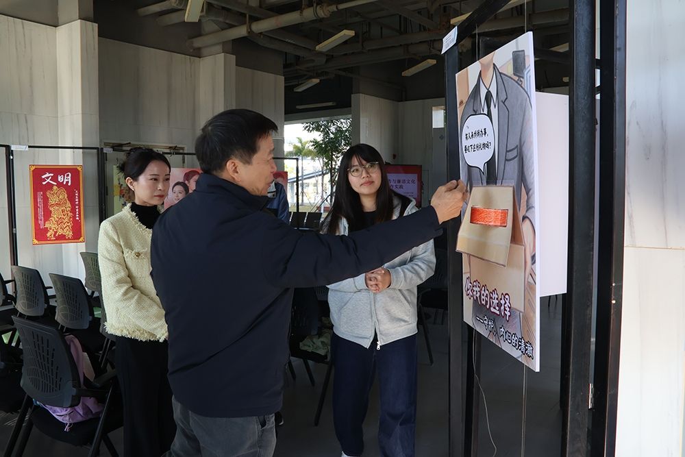 课程与展览所呈现的,远不止于专业技能。学院党委副书记洪蒙典认为本次公开课兼具三重价值:首先是创新性,这是汕大首次将廉洁教育与专业课程融合的创新尝试,突破了传统廉洁教育模式;其次紧扣专业性,让学生在锤炼广告专业技能中接受思想洗礼;最后学生作品更凸显实践性,凸显了学生的扎实功底与社会责任感,也印证了实践教学成效。