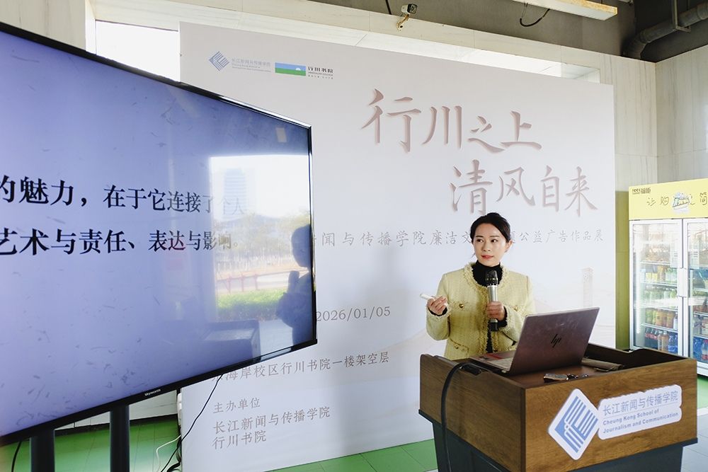 据悉,此次展览是长江新闻与传播学院《公益广告》课程的实践成果展示。该课程通过系统讲授、案例分析与实践创作等方式,致力于培养学生的专业能力与社会责任感。展览将持续至2026年1月5日,面向全校师生开放。在这“行川之上”,清廉之风正通过新闻学子的创意,徐徐吹拂校园。